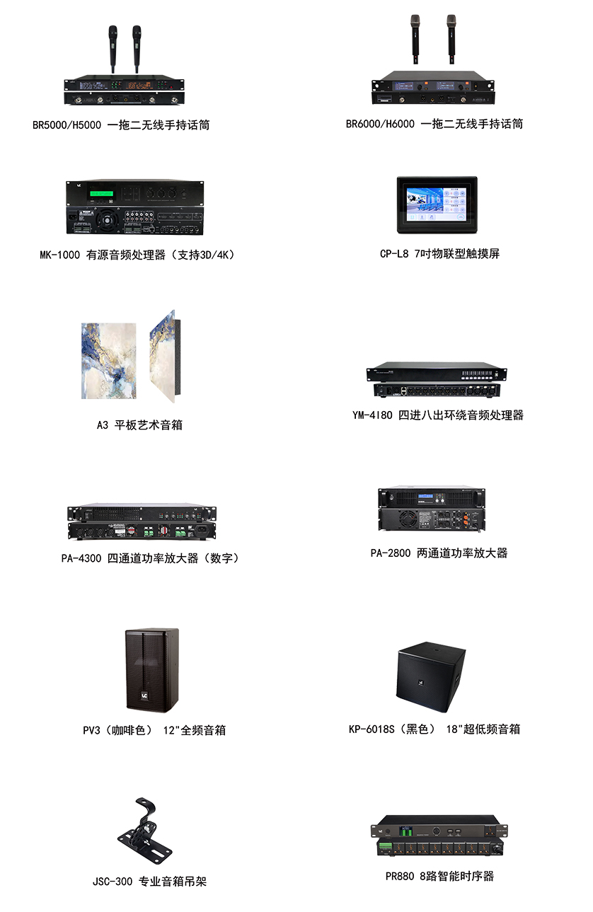 BR6000/H6000 一拖二无线手持话筒 1套MK-1000 有源音频处理器(支持3D/4K) 1台