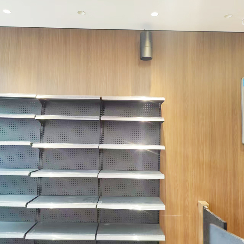 入口处对称安装的白色UC音柱更提升了整体声场均匀度,系统调试后实测频响曲线平直,各区域声压级偏差≤3dB,客户验收时对语音清晰度与音乐层次感给予了高度评价。