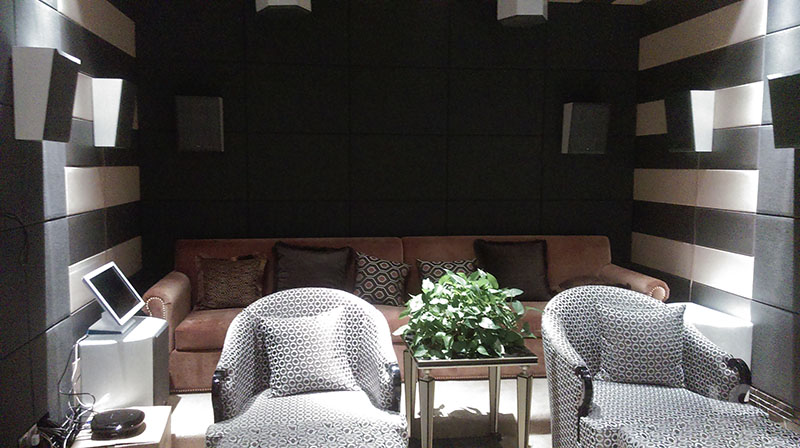 江苏苏州体验馆安装了本公司的的UC11.2全景声影院系统,此套系统兼容了K歌和听音乐,看电影三种功能,本系统拥有3D沉浸式音效,立体声环绕效果,让你在看电影的时候有种身临其境的感觉,此外系统采用的是HIFI音效的音响,不仅能够满足还原高品质音效的需求,还可以运用到K歌中,让你体验前所未有的酣唱盛宴。苏州体验馆还采用了本公司最新的顶环绕音响和侧环绕音响,在保证了全景声音效的情况下,是整系统更具有艺术风格,与装修融为一体,看起来高端大气上档次!