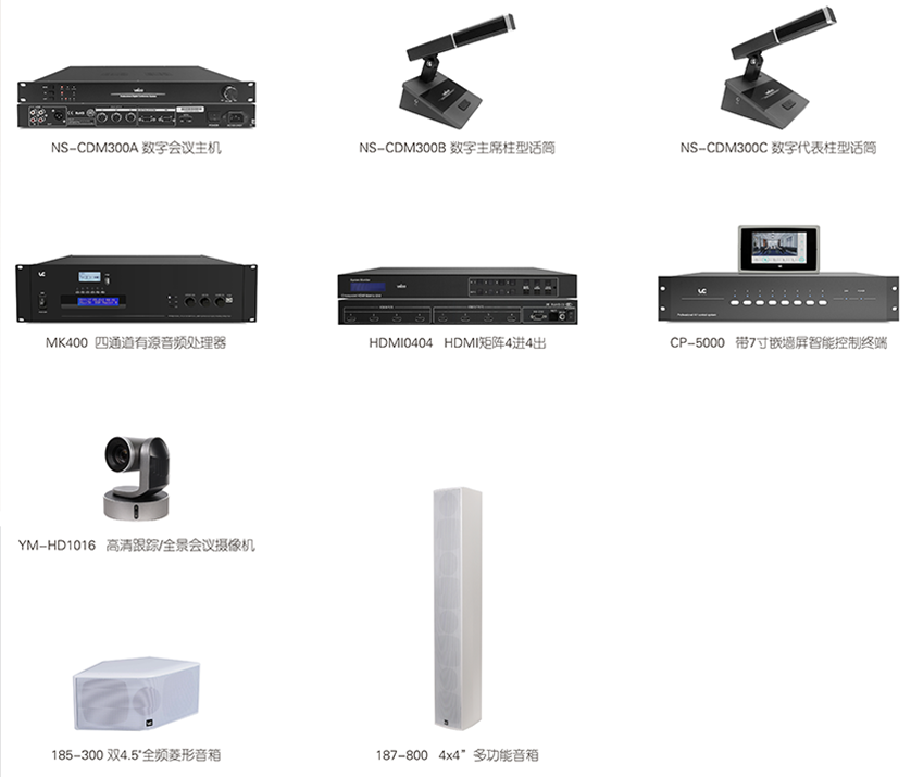 话筒使用了方管柱形手拉手话筒,安装稳固、美观大方;搭配话筒处理器使用,远距离也能精准拾音。